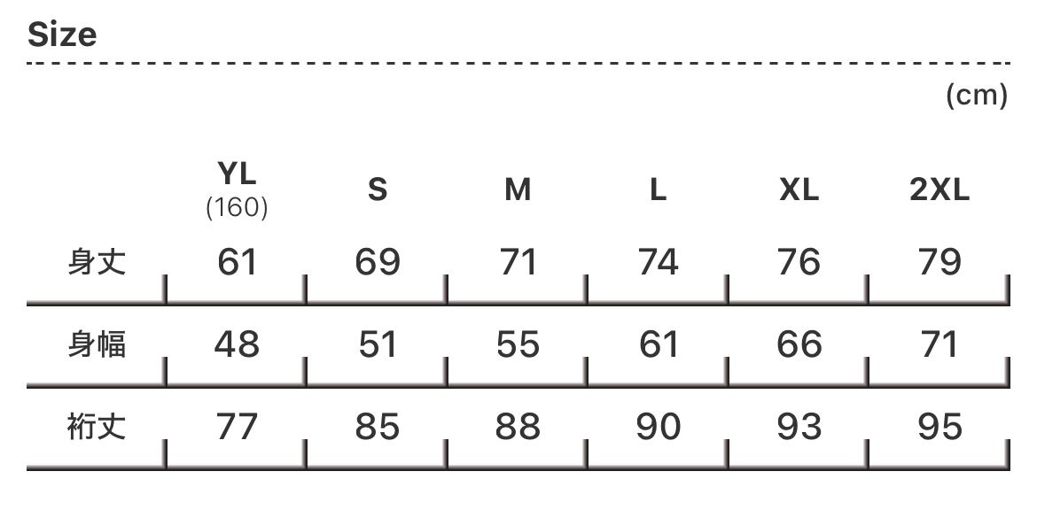 2XLサイズ 身丈79cm/ 身幅71cm / 裄丈95cm
