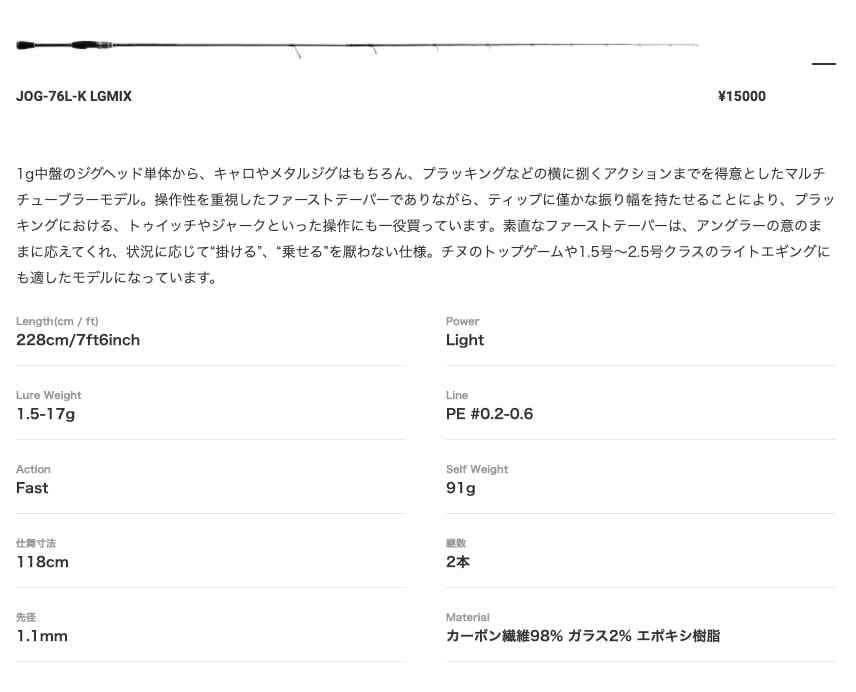 チヌのトップゲームや1.5〜2.5号クラスのライトエギングにも適したモデルになっています。